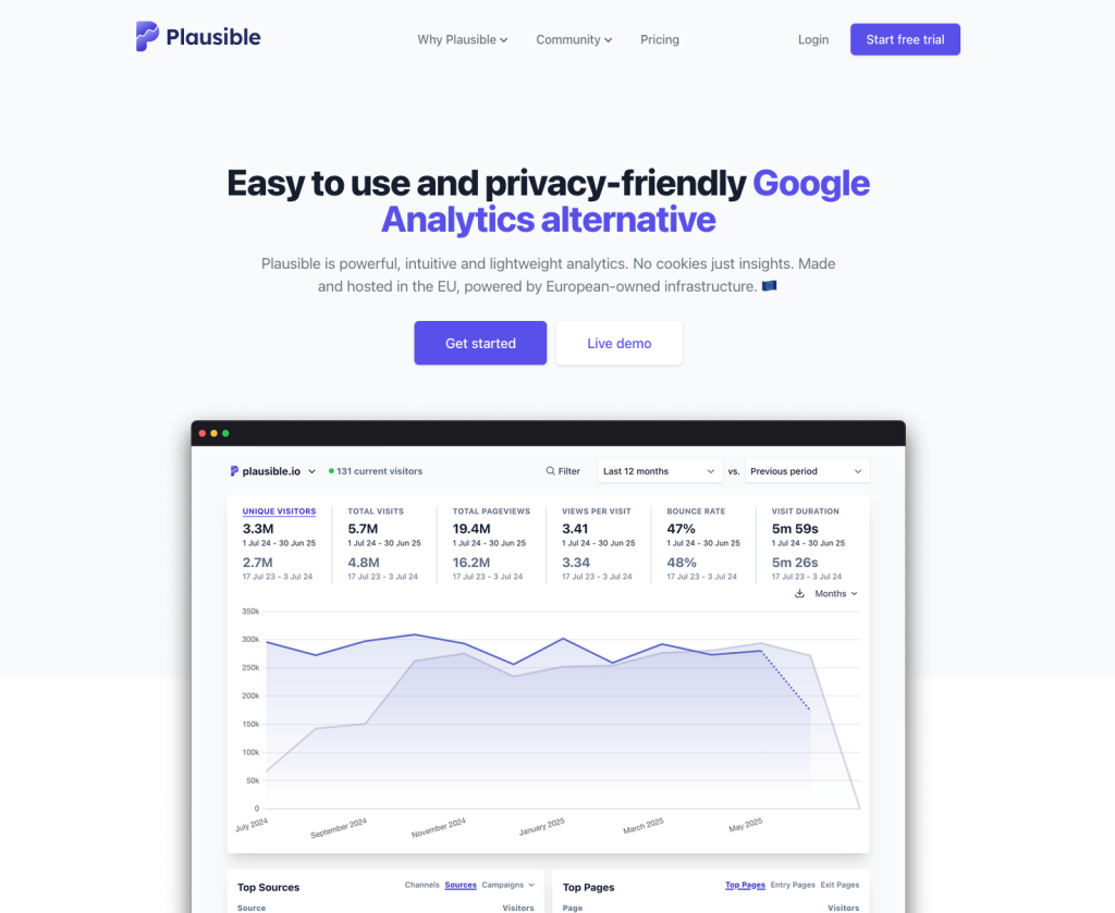 Most analytics tools try to do everything all at once. They track every mouse click and every breath a user takes. Plausible takes a completely different approach by focusing strictly on essentials. You get all the important numbers on a single page. There are no hidden menus to get lost inside.